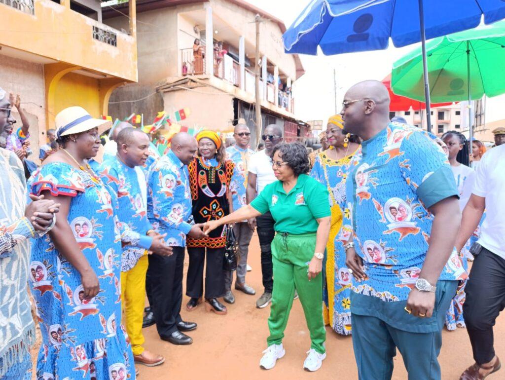Accueillie en grande pompe au pied de l’immeuble siège, par plusieurs dizaines de jeunes bénévoles de la Fondation, en présence d’une foule nombreuse, constituée des populations et militants du Rassemblement démocratique du peuple camerounais (RDPC), le Professeur Nalova Lyonga, a pu toucher du doigt, la chaleur légendaire de l’intégration nationale et du vivre ensemble, qui caractérise la cité de la Noblesse, de la dignité et de l’élégance, le département du Ndé.