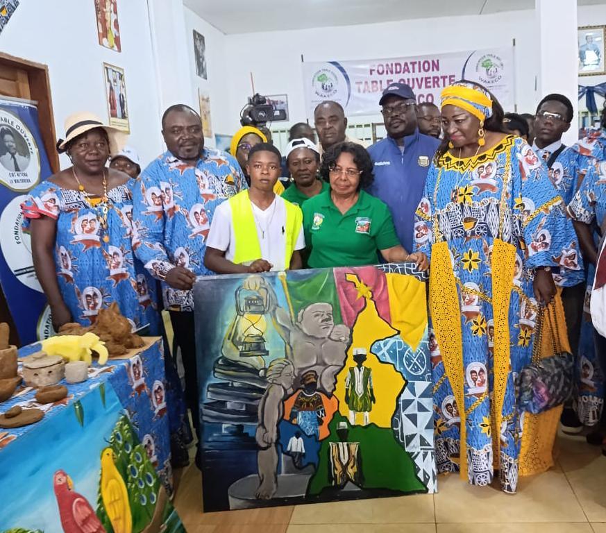 Accompagnée du Gouverneur de la région de l’Ouest, Awa Fonka Augustine, du Préfet du département du Ndé, Auguste Essomba, du Sous-préfet de Bangangté, des autorités municipales et traditionnelles, Madame le Ministre des Enseignements secondaires, a eu droit à une visite guidée des locaux de la Fondation WAKECO, avec un arrêt majeur dans l’atelier art plastique, où les jeunes sont formés et encadrés gratuitement dans le dessin, la sculpture, la poterie et même dans la fabrication des objets d’art, entre autres.