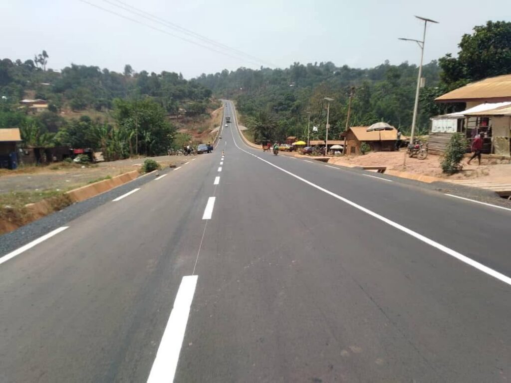 Les projets de construction routière concernent sur la Nationale N°11, le bitumage de la Ring Road, section Kumbo-Ndu: 39 km pour un montant de 34,92 Milliards, la construction de la section Ndu-Nkambe d’un linéaire de 31 km pour un montant de 28,99 Milliards et le bitumage de la section Nkambe-Misaje, y compris la voie de contournement de la ville de Nkambe (18 km) pour un montant de 18,28 Milliards. Sur la Nationale N°6, les projets en cours sont liés à l’aménagement de la voie de contournement de la falaise de Bamenda, y compris le bitumage d’un peu plus de 20 km de routes communales.