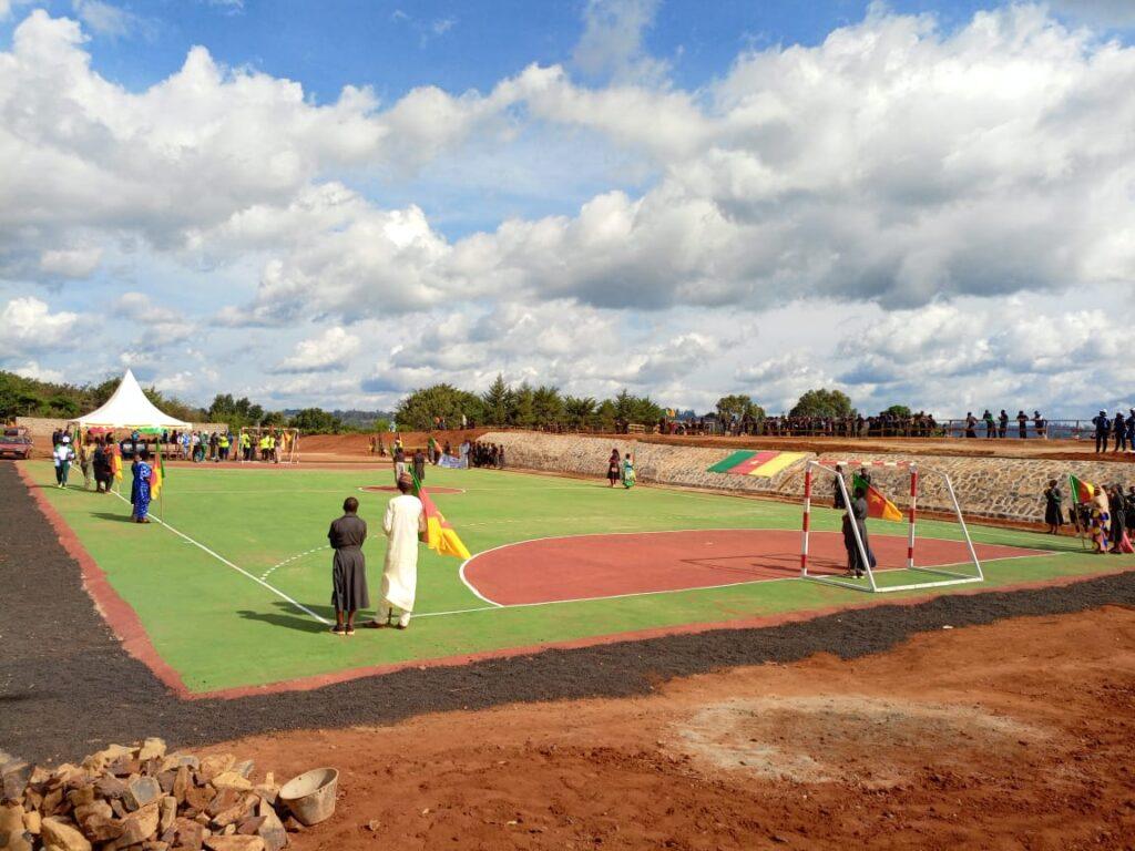 Il s’agit en effet de l’inauguration des infrastructures sportives engagées par la Fondation WAKECO, de Madame le Ministre, Célestine Ketcha Courtès, avec par la suite, un appui de la délégation départementale du MINHDU pour le Ndé, après des dégâts importants causés par des fortes précipitations enregistrées dans la localité, sur les ouvrages qui étaient pourtant déjà réalisés.