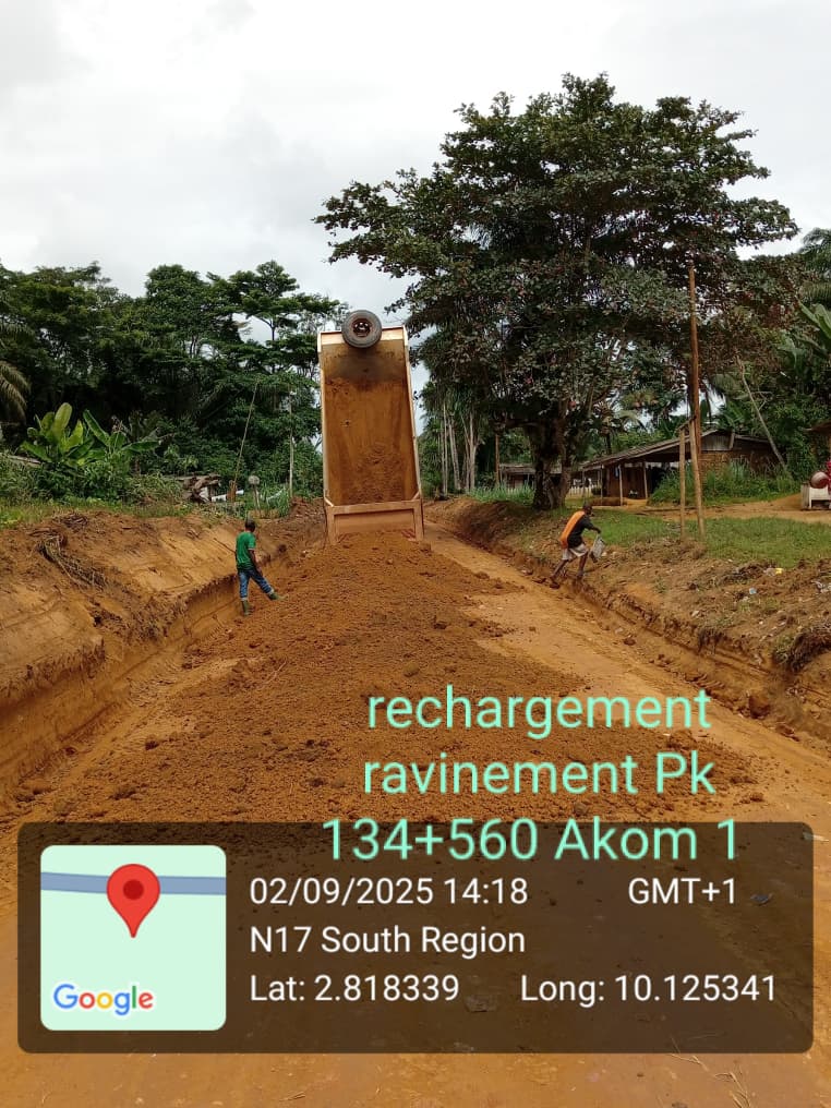 Dans l’attente du démarrage des travaux lourds, l’entreprise ICM Construction Ltd assure le maintien de la circulation sur l’itinéraire Ebolowa–Akom2–Kribi, avec l’appui financier du Ministère des Travaux Publics, afin de garantir la mobilité des usagers.